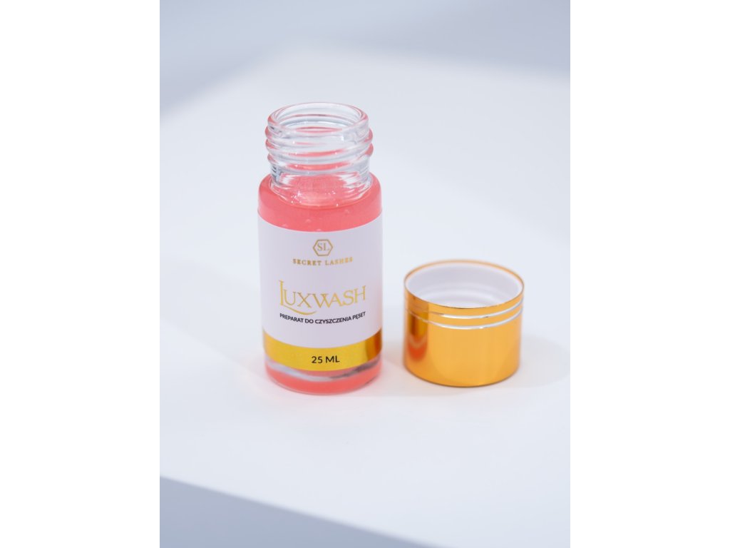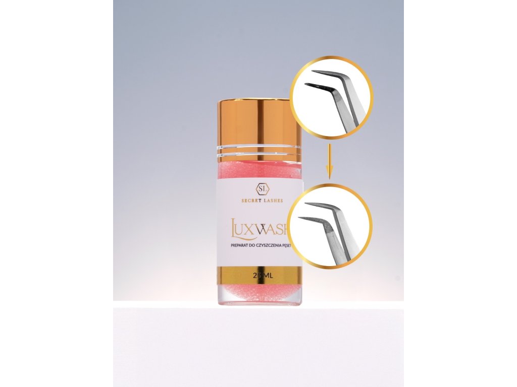 LUXWASH je spolehlivý přípravek vytvořený pro stylistky řas, které si cení hygieny, přesnosti a pohodlí při práci. Uzavřený v elegantním, praktickém balení o objemu 25 ml obsahuje dvě jemné houbičky, které účinně odstraňují jak čerstvé, tak zaschlé zbytky lepidla z pinzet.
