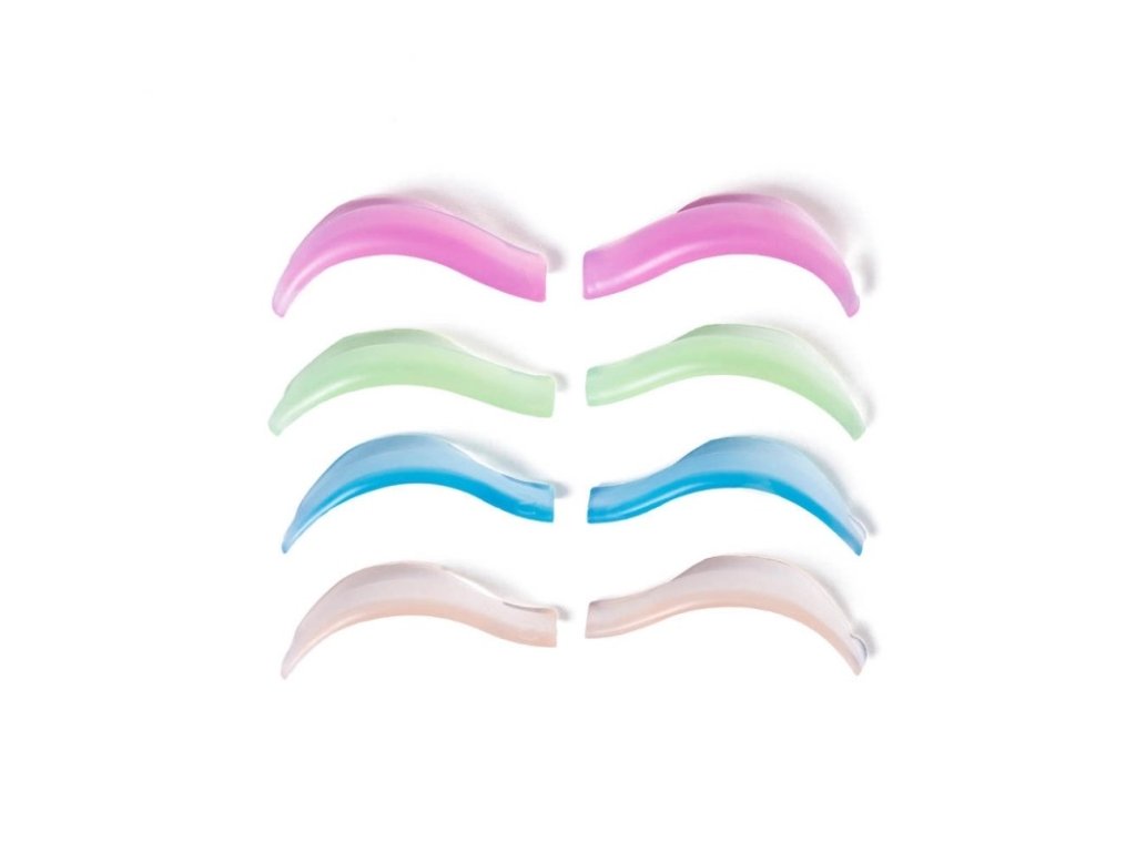 Silikonové podložky RAINBOW PADS - barevný pomocník při laminaci řas, kde každá barva znamená specifickou velikost: růžová (XL), modrá (L), oranžová (M), zelená (S). Podložky poskytují liftingový efekt, který krásně otevírá oko - ideální řešení pro klientky s malýma očima nebo ty, které chtějí efekt otevřeného pohledu.